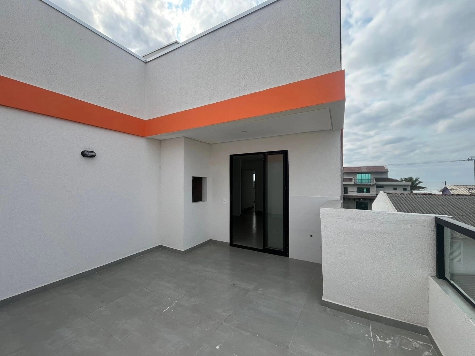 Amplo living com ventilação cruzada e teto em dry wall com projeto luminitécnico com cozinha integrada, área de serviço separada, terraço com parapeito em aluminio anodizado preto e vidro, churrasqueira à carvão, espera para piscina, ofurô ou hidro, 3 dormitórios grandes sendo 1 suite permitindo a acomodação com muito conforto e banheiros com ventilação natural, nicho para shampoo, cuba de apoio em granito, louças Incepa e ponto para ducha higiênica.